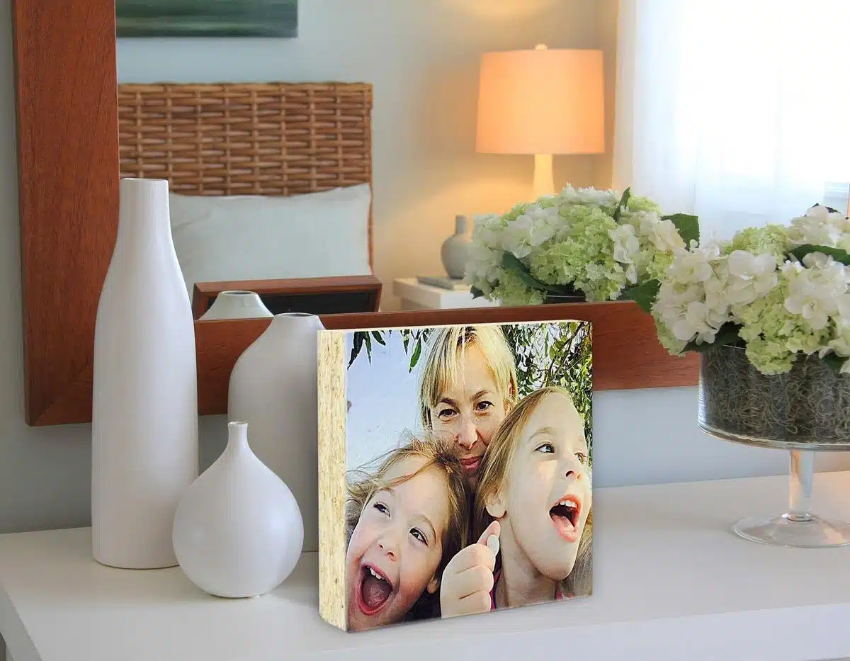 בלוק עץ עם תמונה אישית הופך לחלק מהבית, לא סתם קישוט זמני. זהו חפץ שהיא תוכל לגעת בו, להרים אותו, ולהרגיש את החומר הטבעי מתחת לידיים – חוויה חושית שמוסיפה לחוויה הרגשית.